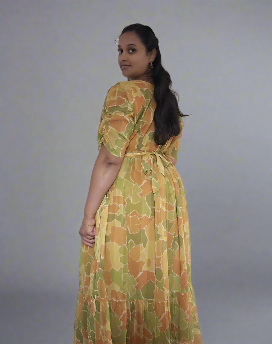Mustard Gold Flower Maxi Dress